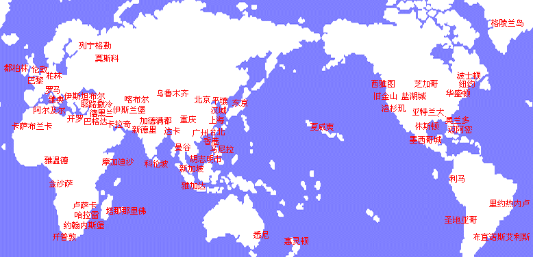 2、用鼠标点击城市或某区域后,显示的是该地区的时区和时间,同时判断其对应基准时间的日期,如昨天、今天和明天。